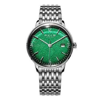 I believe this to be one of the most attractive timepieces produced in China. It has a dial with a deep, rich, textured green face, a stunning, elegant handset, excellent finishing, and a bracelet with varying finishes.