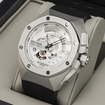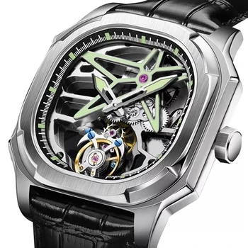 Case shapes range from round to rectangular and octagonal. Many models offer an exhibition caseback to showcase the mechanical movement inside.